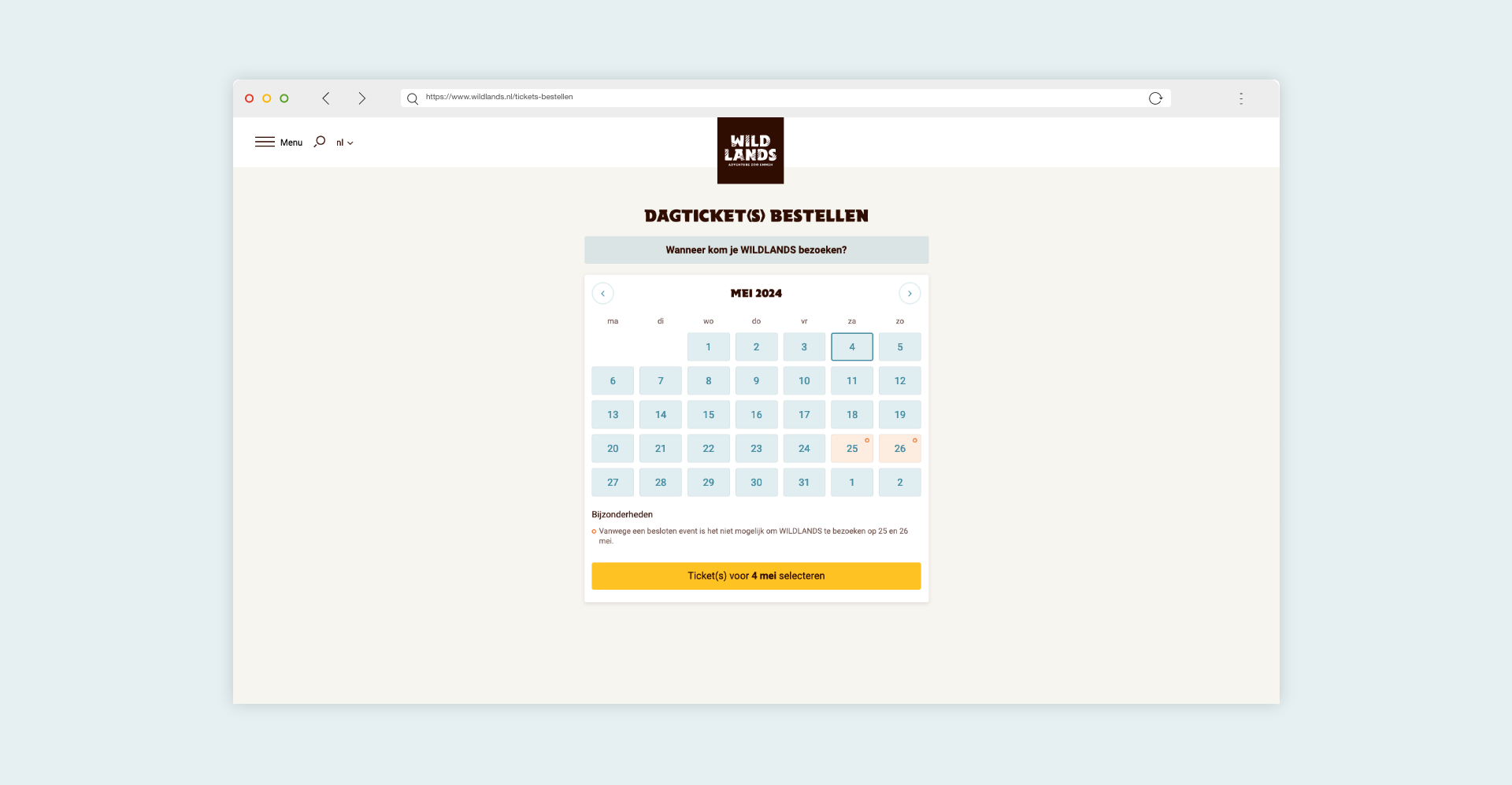 Bij Wildlands begint de voorpret van een dagje dierentuin nu al op de website. Klanten kopen via het ticketsysteem in een paar clicks hun kaartje, waarna de tickets met QR-code zo in hun mailbox verschijnen. Natuurlijk geoptimaliseerd voor mobiel en je wallet, zodat je bij de entree snel door kunt. Wildlands kan makkelijk en snel upsell-mogelijkheden in het aankoopmenu toevoegen, zodat een parkeerkaart zo aan je entreeticket is toegevoegd. Ook het self-serviceportaal voor abonneehouders wordt goed gebruikt. En dat heeft zijn effect gehad op het aantal conversies.